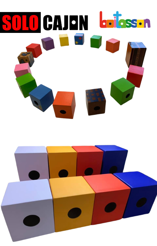 • Mini Cajón para Niños (4-8 años): Cajones de tamaño compacto (cubos de 10 pulgadas), diseñados especialmente para los más pequeños, fomentando la creatividad y coordinación desde temprana edad.